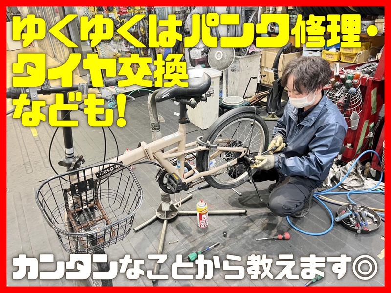 求めている人材 \無資格OK!未経験者歓迎♪/ \Wワーク・フリーター歓迎!/ ■もちろん経験者歓迎 └接客業、販売スタッフ経験など活かせます◎ ■学歴不問(中卒・高卒も歓迎!) ■正社員登用もアリ♪ ■性別不問 ■経験不問・資格不問 自転車整備の資格者は 時給1200円スタート! 20代30代の若手が主力で活躍中! ”ゆくゆくは正社員になりたい…” なんて方も大歓迎です(^.^) 当店で正社員デビューも可能ですよ◎ ★自転車に関する知識はなくてOK♪  ̄ ̄ ̄ ̄ ̄ ̄ ̄ ̄ ̄ ̄ ̄ ̄ ̄ ̄ ̄ ̄ 自転車に関する知識ゼロで始めた スタッフばかりですが、みんな大活躍中! 完全未経験から長く役立つスキルが 身につけられますよ(^_-)-☆ ★こんな方にぴったり!  ̄ ̄ ̄ ̄ ̄ ̄ ̄ ̄ ̄ ̄ ̄ ・人と話すのが好き ・接客や販売スタッフの経験がある ・アルバイトから正社員を目指したい ・安定して長く働きたい ・駅近の場所で働きたい ・自転車が好き、興味がある ・機械いじりやプラモデルなど細かい作業が好き ・一生モノの技術を身につけたい ★サポート体制もばっちり!  ̄ ̄ ̄ ̄ ̄ ̄ ̄ ̄ ̄ ̄ ̄ ̄ ̄ 平日3~4名、土日祝4~5名の勤務です。 安心して働いていただけるよう、 社員が常時いるようにしています! 分からないことや不安なことがあれば なんでも聞ける環境ですよ♪