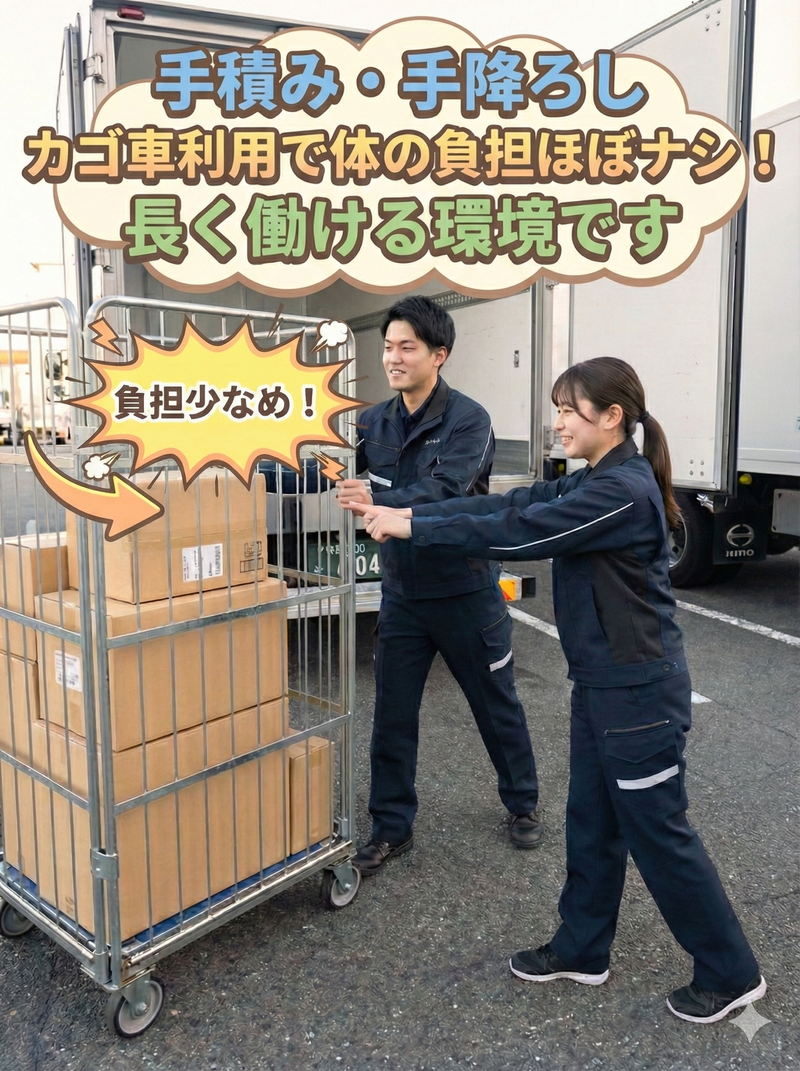 仕事内容 この求人のポイント ー ■週1日~、1日5時間~OK!扶養内やWワークも可能。 ■固定ルート配送で一度覚えれば安心。 ■カゴ台車・パワーゲート使用で手積み手下ろしなし。 ■中高年・シニア、女性も活躍中!AT車あり。 ー <仕事内容> 冷凍パワーゲート車での東海3県(愛知・岐阜・三重)のセンター間輸送業務(カゴ車納品)をお任せします。 具体的な仕事内容 ■冷凍パワーゲート車での東海3県(愛知・岐阜・三重)のセンター間輸送業務 ■カゴ台車での荷物の積み下ろし(ボタン一つでパワーゲートで簡単に作業でき、手積み手下ろしは一切なし!) <職場環境について> 男女比:男性も女性も活躍中 (30代~60代の男女が活躍中!) 動態管理システム全台導入済み、遠隔点呼導入予定。2025年秋から全トラックにAIドラレコ導入決定。 配送コースは自社で作成するため効率的な運行が可能。「小さい子供がいるので○○時には帰宅したい…」などの事情も考慮してコース作成が可能です。 <研修について> 資格支援あり。