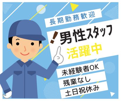 資格 ・未経験歓迎 ・ブランクOK! ・資格不問 <長期で働ける方を大歓迎!> *学歴・職歴・転職回数なども一切不問! *レギュラー勤務で稼ぎたいフリーターさん歓迎 *社会復帰となるブランク明けの方も応援! *育児が一段落して時間ができた主婦(夫)さん歓迎 *20代~50代の男性スタッフが活躍中!
