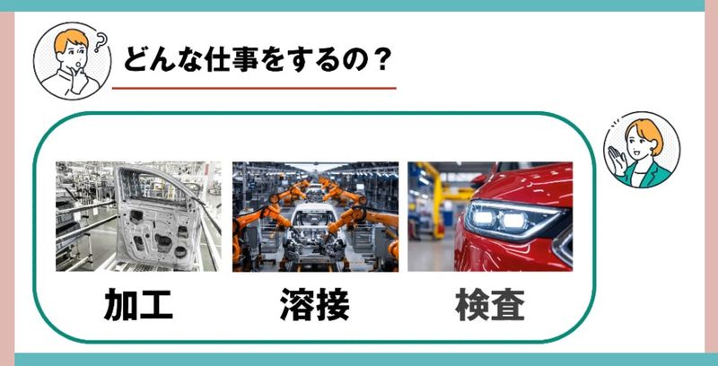 仕事の内容 <はじめまして!日総工産株式会社です> 当社はトヨタ自動車九州のオフィシャル製造パートナーです。 日総工産株式会社の正社員としてトヨタ自動車九州 本社・宮田工場に勤務し、製造業務を行う社員を積極採用中です。 異業界からの転職、工場未経験で始めた社員が多数活躍しています。 入社特典や事前研修をご用意して、あなたの新生活スタートを応援します! ぜひ、私たちと新しいステージの第一歩を踏み出してみませんか? <トヨタ・レクサスの自動車製造> 憧れの高級車レクサスを生み出す喜びと誇り 職場となるのは、大手自動車メーカー「トヨタ自動車九州株式会社」の本社・宮田工場です。 この工場では、レクサスUX、NX、RXなどを中心とした高級車を製造しています。 工場内はロボットの導入により自動化が進められ、人手がかかる作業とロボットが行う作業を明確に分けることで、効率性と生産性を向上させるとともに、従業員の健康を大切にする働きやすい職場づくりが徹底されています。 ▼具体的な業務内容 レクサスの自動車製造をお任せします。 以下のような工程に分かれ、分担して作業を進めていきます。 ・車体の組立(電動ドライバーを使用) ・溶接(溶接ロボットのオペレーター) ・検査 など ※配属される部署により、担当する工程は異なります。 ※業務に必要な作業着や保護メガネなどは、それぞれ会社から貸与されます。 この仕事の魅力 未経験でも、正社員になれます! 入社時に必要なスキルは、特にありません。まったくの業界未経験でも、問題なし◎ 現場への配属前に、まずは事前研修を受講し、製造に関する知識や基本的な工具の使い方などを学びます。 座学と実技を学んだあとに配属となり、いきなり現場へ出される事はないので、工場勤務が初めての方でも自信を持って仕事を始められます! 「そろそろ正社員として安定した職に就きたい」 …そう考えている方は、このチャンスをどうぞお見逃しなく! 入社祝金30万円の支給あり! 今なら期間限定で、入社祝金30万円がもらえます。 通常の給与とは別に支給される、うれしい臨時収入です! 働きやすい環境と充実したサポート体制 「TEAM Kyushu」を掲げ、チームワークを最も大切にしています。 一人ではできないクルマづくりだからこそ、日総工産の社内だけでなく、地域や取引先とも連携し、より良いクルマづくりを目指す一体感があります。困った時には、すぐに先輩や上司がサポートしてくれる環境です。 他にもこんなおすすめポイントがあります! 昇給・賞与・退職金あり! 正社員でも転勤なし! 家賃が格安の快適ワンルーム寮あり! 年1回の昇給制度と、年2回の賞与あり!正社員ならではの充実した福利厚生も魅力です。 また、正社員でも原則転勤がないので、地元でじっくり腰を据えて働きたい方にもおすすめ! 地元の方はもちろん、ワンルーム寮をご用意していますので、全国からのご応募も大歓迎です! 職場までの送迎もあり、通勤もラクラクです◎ WEB(オンライン)面接も実施中 来社いただかなくても面接ができる、WEB(オンライン)面接も実施中です! スマホさえあればご自宅からでもお気軽にご利用できます。 操作も簡単ですので、ぜひご活用ください! <職場情報> 勤務先は当社のお取引先内です。 職場には、当社の構内事務所があり社員が常駐しています。 仕事で分からない事や心配ごとがあってもすぐに相談できるので、安心です。 ※雇用契約は日総工産株式会社と結ばれますが、仕事は請負業者の事務所(請負先)で行われるため、勤務先住所は事業所住所とは異なります。正社員雇用のため日総工産株式会社が業務指示の責任を負い、個人が派遣社員として雇用されません。。