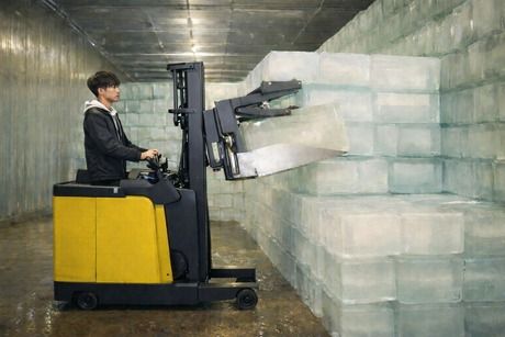製氷工場でのフォークリフト作業