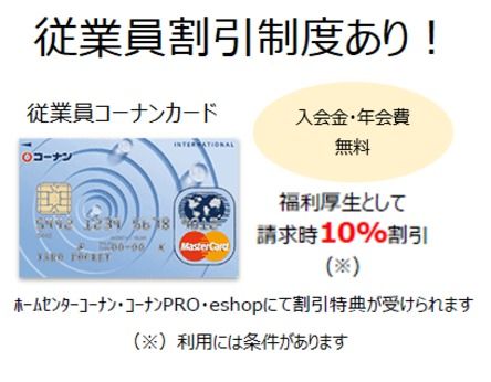 仕事内容 *「コーナン商事」について* ホームセンター「コーナン」を はじめとする各種ホームセンターを運営している会社です。 社員数は4000名を超え、 プライム市場にも上場。 各店舗をバックアップする、 さまざまな業務を行っています。 *「仕事内容」について* コーナンを運営する「コーナン商事株式会社」の 本部スタッフとして、 法人営業部の運営に関わる事務をお願いします。 具体的には、見積書・請求書など書類作成、をはじめ、 メール、電話応対、その他事務処理などの事務業務全般です。 シフトは時間の調整が可能ですので、 空き時間に働きたい主婦(夫)さんやフリーターさんにもオススメです! ★企業一般事務経験のある方大歓迎!★ *あなたのペースで働ける!* プライベートと両立しながら 働けるのもコーナンの魅力! あなたの予定最優先のシフトも大歓迎◎ メリハリつけて働けますよ。 「海外旅行に行きたいので長期休みがほしい!」 「テストに備えて今週は休みたい!」 そんなご相談もお気軽に! もちろん、 「来月はライブがあるのでしっかり稼ぎたい!」 そんな要望も大歓迎です。 *幅広い年齢層の方が活躍中!* 20代~60代まで 年代を問わず多くの方が活躍中。 学生さんやフリーターさん、主婦さんが、 困った時は助け合いながら みんなで協力して働いています。 未経験スタートがほとんどなので 新人さんの不安な気持ちも分かってくれます。 じっくり慣れてもらえれば大丈夫です。 先輩たちも皆そうでしたから。 *超オトクな、従業員割引制度あり* 従業員割引制度でお得にお買い物♪ 生活必需品が安く手に入る嬉しい特典! コーナンのクレジットカードを使って お買い物をすると10%OFFで購入可能! 月15,000円までが割引対象◎ 最大1年間で180,000円もお得に★ ※社員割引対象者のみ ※他店舗でもご利用OK!! また皆さんへ年2回プチボーナスも!