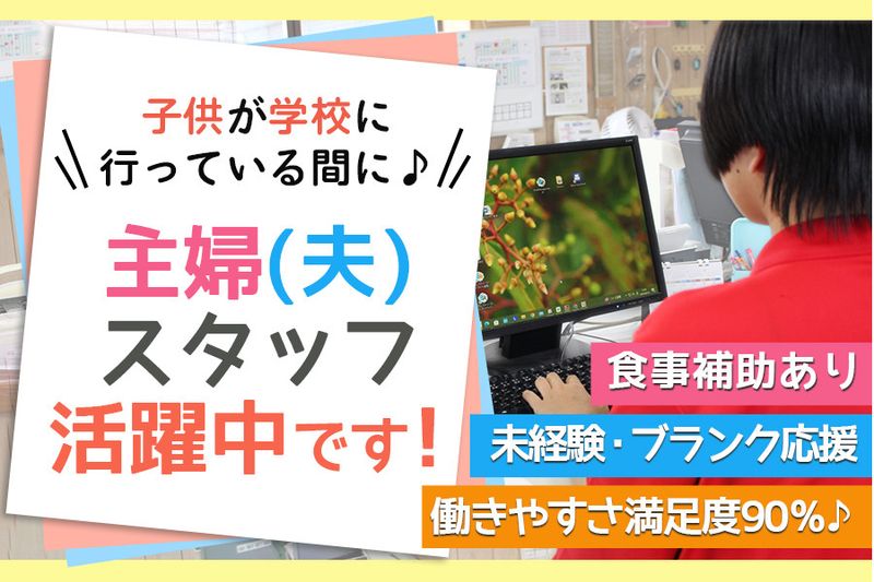 【雇用形態】 アルバイト・パート 【契約期間】 試用期間3ヵ月(時給1,097~1,197円)。その後、パートアルバイトのため契約条件による。 【その他】 #未経験者歓迎 #主婦・主夫歓迎 #フリーター歓迎 #ブランクOK #学歴不問 #経験者歓迎 #有資格者歓迎 【ハローワークへの求人掲載について】 弊社の求人はハローワークに掲載していない案件が多数ございます。(ハローワーク求人掲載は期間が経つと自動的に掲載が止まるため)お気軽にお問い合わせください。 【このような方活躍】 給食弁当や配食製造販売業界の営業サポートスタッフ(営業事務、アシスタントスタッフ、営業アシスタント、事務サポートスタッフ、事務員)で未経験から働きたい方。営業サポートスタッフ経験者の方。週5日、週休2日制、食事補助ありの営業サポートスタッフで働きたい方。学歴不問、ブランクOK、主夫主婦、フリーター、中高年層(シニア層)が活躍している職場で働きたい方。営業サポートスタッフでパート・アルバイトとして働きたい方。営業サポートスタッフを新着急募。営業サポートスタッフ、営業事務、事務パート、主夫主婦パート、パート事務。 求人ID【P-KMY99】