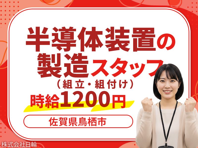 仕事内容: 半導体関連機器の製造業務をお願いします。 今後の需要拡大が見込まれる業務なので お仕事量は年中安定です! ✅指示書や図面に従って部品を組み合わせる。 ✅組み立てたものを検査する。 ✅完成品の運搬や部品等の補充などの付帯業務 手先を使った細かい作業が得意な方に ピッタリなお仕事です。 【おすすめポイント】 ⭐清潔に保たれたクリーンな職場での作業です。 ⭐作業マニュアル完備!工具の使い方から学べます。 ⭐製造経験がある方もステップアップを目指せます! ⭐丁寧な研修あり!初めての方も安心してスタートできます。 【寮情報】 1Rタイプの完全個室をご用意しています。 トイレ・バス別の独立設計で、 プライベート空間もしっかり確保。 ⏩独立キッチン付きで自炊も快適 ⏩家電付き(例:32型テレビ・冷蔵庫・洗濯機など) ⏩布団や自転車も給与控除でレンタルOK ⏩モバイルWi-Fiレンタルサービスあり ※上記は一例です。 ご案内する寮は時期によって異なる場合があります。