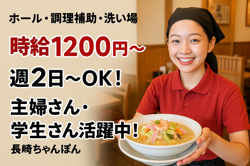 仕事内容 未経験から始められる♪人気飲食店スタッフ募集! \人気の麺類を提供しているお店で一緒に働きませんか?/ 【お仕事内容】 ◎レジでのお会計 ◎お客様のご案内や配膳などのホール業務 ◎盛り付けなどの簡単な調理補助 ◎食器洗い・片付け など 難しい作業はありません! 最初は「いらっしゃいませ」と元気に挨拶できればOK♪ 一つずつ丁寧にお教えするので、未経験の方も安心です。 【ここがポイント!】 ✅ 未経験歓迎!初バイト・ブランクありでも大丈夫 ✅ 笑顔で接客できればスグに慣れます ✅ 明るく活気のある雰囲気で楽しく働ける ✅ まかないありでお腹も大満足♪ 「接客が初めてで不安…」という方も、先輩スタッフがしっかりサポートします! 学生さん・フリーターさん・主婦(夫)さんまで幅広く活躍中。