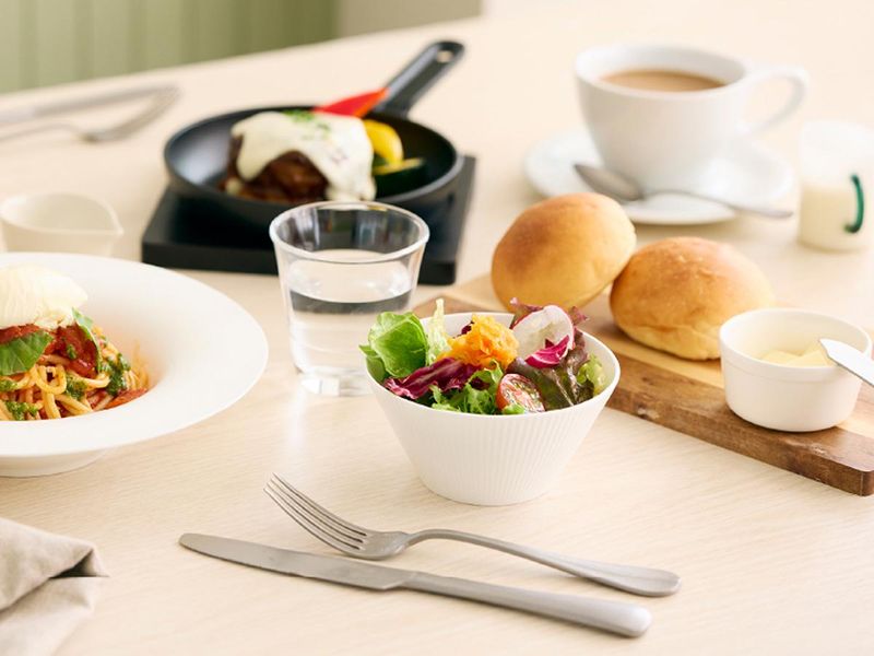 職場環境 乳白色で統一された店内は、 全55席で全席禁煙。 ============= ◎人気メニューを一部ご紹介 ウニ香る魚介のクリームドリアは、 特選よつ葉4.0牛乳にウニを合わせた 贅沢なホワイトソースと 魚介を使ったシーフードドリアです。