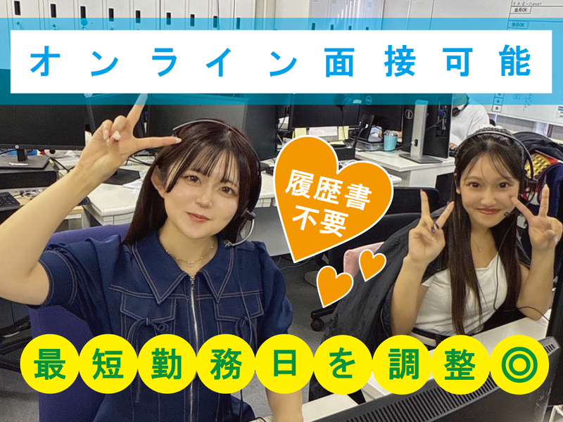 選考プロセス まずは、WEB応募下さい! ご応募いただきましたら、社内にて選考し順次担当者よりお電話させていただきます。 応募時の電話番号・メールアドレス宛へご連絡いたしますので、不在着信やメールボックスのご確認をお願いします。 <オンライン面接について> 履歴書・職務経歴書は不要です! フランク面接を行っているので、リラックスして参加ください♪ <入社日の相談はお気軽に> もちろん、研修日の調整は可能なので、 翌日から・・・1週間後から・・・などなど調整出来ますので 一緒に面接の際に決めていきましょう◎