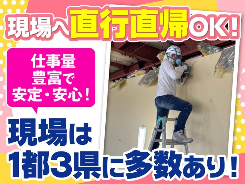 勤務地 *【直行直帰について】* 公共交通機関を利用しての 現場への直行直帰OK! ※車・バイクなどでの直行直帰不可 春日部の事務所に集合して 現場に乗り合いで向かう場合は 「車・バイク通勤OK」です!
