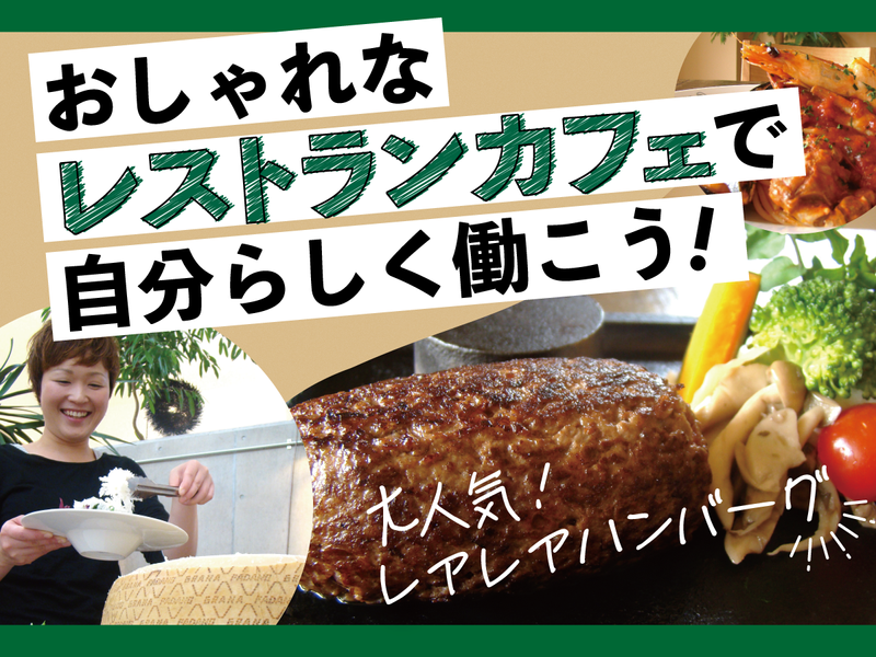 仕事内容 << 新しい1年は新しいお仕事から! >> \\ バイトデビュー&未経験応援 // 週2日~・1日3h~*土日祝:時給1200円~ フリーター・Wワーカーの方も歓迎! ―*―*―*―*―*―*―*―*―*― 【特別な日を彩る、プチ贅沢な癒し空間】 アンティークと緑あふれる明るいお店、 《タヴェルナハンバーグ》。 当店は、忙しさでサービスが疎かに なることはなく、すべてのお客様に 心のこもったおもてなしを提供しています。 「おしゃれなお店で働きたい!」 「丁寧な接客を心がけたい!」 「学校や私生活に合わせて働きたい!」 そんな働き方を当店で叶えませんか? ―*―*―*―*―*―*―*―*―*― <仕事内容> ホールおよびキッチンのお仕事をお任せ! 【ホール】 注文取りや料理提供、テーブル片付けなど 【キッチン】 仕込みや調理・調理補助など >>仕事は簡単なことから少しずつ! あなたの成長に合わせて、少しずつ任せる 幅を広げていきます。丁寧に働ける方、 未経験でも大歓迎です。 -------------------- <ランチタイムはまかないあり!> 光あふれるゆったり癒し空間で食べる まかないは、仕事のちょっとしたご褒美。 お店の雰囲気や料理をしっかり味わって、 お客様にも魅力を伝えてくださいね。 《様々なメニューでお客様を魅了!》 ・アツアツ焼き石で焼いて食べる、 常陸牛100%使用のレアレアハンバーグ ・お客様の目の前で豪快に削る、 削りたてチーズたっぷりのサラダ ・豆のコンディションに合わせて 淹れるハンドドリップコーヒー -------------------- ~ タヴェルナハンバーグについて ~ 常陸牛ハンバーグ、削りたてチーズサラダ、 自家製ジェラートなど、『プチ贅沢』を コンセプトに様々な料理を提供しています。 アンティーク雑貨や観葉植物、 木のテーブルに囲まれた お店はオシャレなカフェ風の癒し空間! デートや女子会はもちろん、 1人で利用したり家族とディナーしたりと 様々なシーンでご利用いただいています。