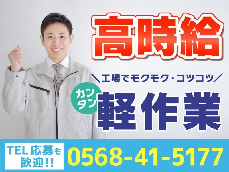 仕事内容 ☆★☆☆★☆☆★☆☆★☆☆★☆☆★☆☆★ 高時給!残業もありでしっかり稼げる! お電話でのご応募も歓迎! (0568-41-5177) ☆★☆☆★☆☆★☆☆★☆☆★☆☆★☆☆★ 未経験者・性別問わず時給1,650円! 小牧市東での工場内作業のお仕事! 嬉しい日払い・週払い可能!(規定有) 未経験スタートももちろん大歓迎! 20代~40代男性スタッフ活躍中です! 高時給!交替勤務!! 残業多めで稼ぎたい人必見です!!! - \\お仕事内容// 機械オペレーター、検査、簡単な軽作業と ありますのでご希望お聞きします! 誰でもできる簡単なお仕事ばかりですよ。 弊社でも長く勤めているスタッフさん多数です! 基本、土日休みですのでプライベートも充実 です。(祝日は企業カレンダーに準じます) ご不安・ご質問ありましたらまずは お気軽にお電話くださいね。 <寮完備> 1ルームアパート(家具・家電がついて きてすぐに生活できます) 自転車も¥1,000/月で貸与可です ※全て一例となります。 タイミングにより、物件が異なります。 時給 1650円 ※週払い日払いOK!(規定) アピールポイント *日払い(規定)・週払い(規定)OK
