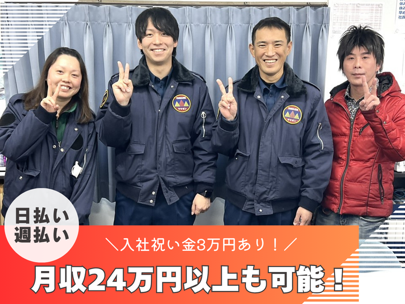 仕事内容 ╲最強の魅力!即日全額現金払いもOK✨╱ 「今すぐお金が必要!」に対応! 日勤だけで月24万円以上も可! 警備の経験は一切不問!Wワーカー、主婦(夫)、シニアまで幅広く活躍中! =================== ⭐稼ぎたい派に最高の厚待遇⭐ ✅【毎日がお給料日】即日全額現金払いOK!(規定有) ✅日給9,450円〜!【早上がりでも日給全額補償】 ✅週3日〜レギュラー勤務は大歓迎! ✅入社祝い金3万円&格安寮完備(月3.2万円)! ✅力仕事はほぼナシ!カラーコーンを運ぶ程度◎ ✅直行直帰もOK!選べる勤務地多数◎ =================== 【負担の少ない日勤警備】 メインは、建設現場での交通誘導や、店舗(スーパーマーケットなど)での施設警備です。力仕事もほとんどなく(カラーコーンの積み降ろしと設置程度)、体力に自信がない方や、久しぶりの仕事復帰の方も安心です。 <具体的には> ◎交通誘導 ◎巡回・立哨 ◎受付・点検 など <現場について> 大阪市都島区の建築現場や店舗 ⇒他にも大阪市内(鶴見区・生野区・浪速区等)を中心に多数! ✋未経験の方大歓迎! ブランクがある方もご安心ください!入社後の研修で、イチから丁寧に指導します。 ✋居心地の良さが抜群! スタッフ定着率が高い温かい職場です。「困った時はお互い様」の精神で、人間関係も良好!休憩室でフリードリンクやお菓子を楽しめるなど、待遇面にも力を入れています。 ✨資格でさらに収入アップ!✨ 【1. 資格をお持ちの方へ】 『交通誘導警備業務2級』保有者は、基本日給を優遇!さらに資格が必要な現場では別途配置手当を支給します。資格を活かして安定高収入をGET♪ 【2. 資格取得を目指す方へ】 未経験からでもOK!資格取得を会社が全面支援し、合格者全員に『祝い金10万円』を支給します。働きながらスキルと収入をステップアップできます!
