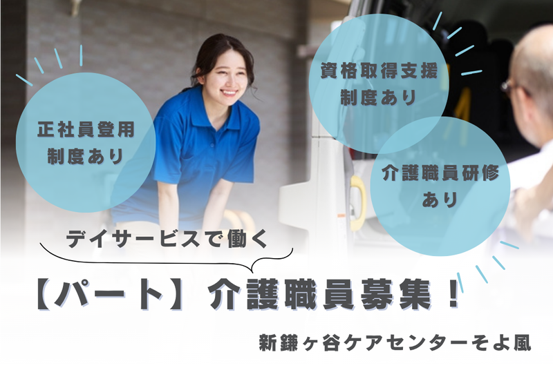 アピールポイント: ◆正社員登用制度あり そよ風にはパート勤務からセンター長までキャリア アップした職員も在籍しています! ◆資格取得支援制度あり 介護業界に関わる資格の取得を会社が応援◎ ◆介護職員研修あり 自立支援介護のスキルを身に付けることができます。
