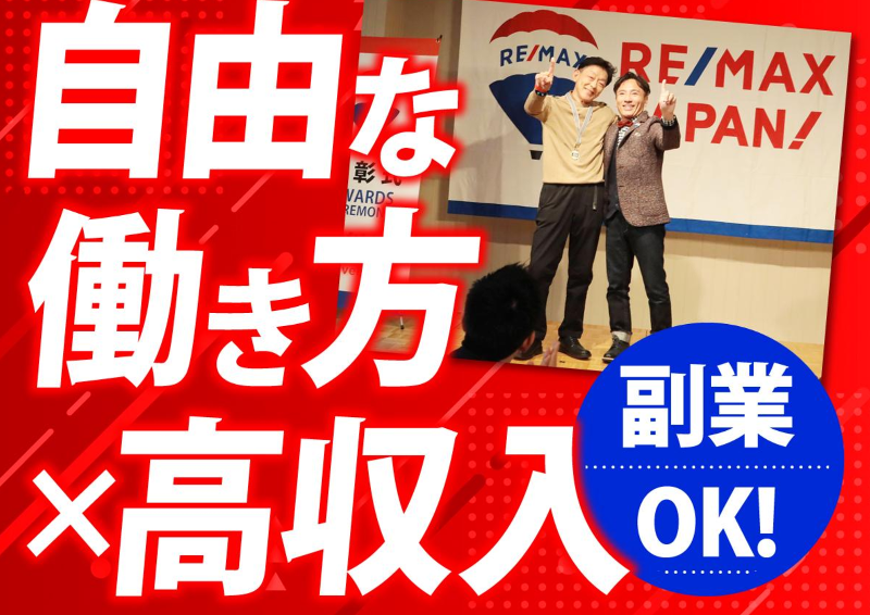 アピールポイント: <ひとり社長・フリーランスとして独立を考えている方は、是非お読みください> リマックスナウは不動産仲介の新しい独立のカタチを提供している会社です おひとり社長の課題とは何なのか?リマックスナウは何を提供しているのか? 「通いやすく使いやすい24H365利用できるシェアオフィス」 「豊富な不動産仲介コンテンツ」 「オーナーがダイレクトに成長持続型伴走サポート」 「切磋琢磨できる仲間たちとのコミュニティー」 おひとり社長・フリーランスである不動産エージェントに不足しがちな部分を補い、自身のビジネスを成長し続けれる環境と文化がここにはあります。 また、リマックスナウの不動産エージェントを志す人は、9割が不動産仲介未経験者。 もちろん経験は不問ですので、そこは問題なし。 そんな未経験者の方が目指すのは、 「自分の得意なこと・好きなこと・興味あること」×「不動産業取引のプロフェッショナル宅建士」×「誰とも競争しない、オンリーワンマーケットの確立」×「生涯・天命の仕事」 最初からそんなこと思っている人はいませんが、取引を通じ、相手と心通わせるうちに、そうなっていくもの。 その結果、いや、経過として 2025年度の成績においてリマックスナウは 日本全国70店舗ある加盟店の中で エージェント在籍数 全国4位 年間賃貸仲介売上高 全国第1位 年間売買仲介売上高 全国第5位 年間賃貸売買仲介合計売上高 全国第2位 その他所属エージェント4人が個人5部門で全国上位入賞 という成果を積み上げました 今もなお、多くの仲間が、自分のビジネスを成長させ続けています 【未経験を支える徹底フォロー体制有】 不動産歴25年以上、不動産協会理事の オフィスオーナーが直接個別指導! 商談には希望すればすべて同席します。 自由にやりたい方には放任主義。 必要な方には徹底的に伴走。 稼げるエージェントになるために、 RE/MAXと、このオフィスとオーナーを 利用しまくってください! 9割近いエージェントが、 未経験で入社し成長しています。 【自由な働き方を実現!】 RE/MAX NOWでは 専業エージェントがほかのオフィスにくらべてかなり多いです あるエージェントは年間で1000万円以上 稼ぎつつ、毎月のように奥さんと旅行に行き、 数日間の休みを取っています。 自分で仕事のスケジュールを 調整できるため、 稼ぎと余暇の両立がしやすいです。 過去には、子育て・主婦業と両立しながら、 年間700万円近く稼いでいた者も。 ノルマや目標は一切なく、 あなたの稼ぎたい額を、 働きたいスタイルで。 選べる自由がここにあります。