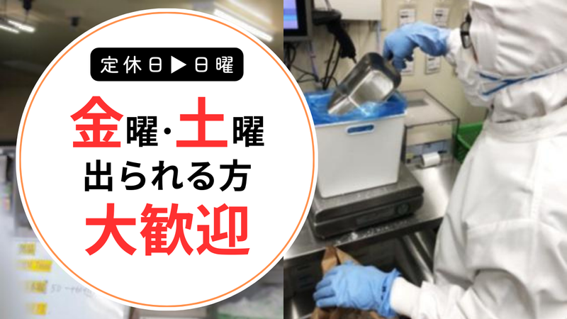 仕事内容 \未経験OK!シンプル計量作業♪/ 食品工場内で、お弁当やお惣菜に使われる 原材料をレシピ通りに量るだけの 工場内の軽作業です。 調理作業は一切ナシ! 包丁や火を使わないので 安心して始められます◎ ⭐働きやすさのポイント♪ ✅実働7.5h!週5日勤務♪ 安定した収入を稼げます◎ 08:00~16:30 \月収18万8000円以上可能!/ =時給1194円×7.5時間×月21日 +別途交通費規定内支給 ✅毎週希望休1日あり! 休日は毎週日曜日+平日1日休み ※土曜出勤あり ✅食品関係・工場勤務が 初めての方も大歓迎! 工場未経験の方も多数活躍中! ◇・・――――――――――――――――・・◇ 【お仕事内容は?】 *レシピを見て、調味料や原材料を計量 *液体はカップで、 粉類は袋や容器で量ります *計量後は次の工程スタッフへ受け渡し *使用した備品や作業場の簡単な清掃 難しい作業はなく、 決まった分量を量るだけの コツコツ作業が中心です♪ ◇・・――――――――――――――――・・◇ 【1日の仕事の流れ】 出勤後、生産予定を確認 ↓ レシピに沿って材料を計量 ↓ 次の製造分を準備 ↓ 使用した道具や作業場を清掃 この繰り返しなので、 覚えてしまえばスムーズに進められます◎ ◇・・――――――――――――――――・・◇ 【働きやすい職場環境】 ・チームで作業するから安心 ・男女問わず幅広い年代が活躍中 ・体への負担が少なく長く続けやすい ・作業場には給水器も設置 ◇・・――――――――――――――――・・◇ 【未経験でも安心のサポート体制】 ✅最初はベテランスタッフが 隣で丁寧にフォローします。 ✅分からないことはすぐ聞ける環境なので、 工場勤務が初めての方も安心です♪ ✅実際に未経験スタートの 主婦さんも多数活躍中! ◇・・――――――――――――――――・・◇ >あじかんって何を作っているの?< 当社で扱っている商品は スーパーのお惣菜やお弁当に入っている とても身近で馴染みのあるきんぴら牛蒡 筑前煮、玉子焼などを製造しています! 少しずつお仕事に慣れていけば 「こんな商品もあったんだ!」 と発見があったり、 今後新しく発売される商品に出会ったり 毎日楽しんで働けます♪ ◇・・――――――――――――――――・・◇