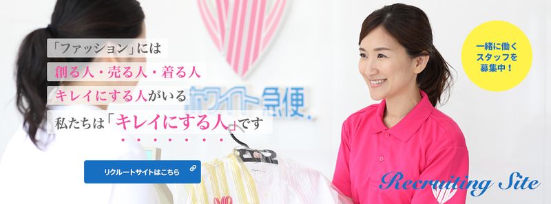 企業のセールスポイント クリーニングの全国チェーン「ホワイト急便」の加盟工場。 朝お預かりで夕方渡しの「クイッククリーニング」を実施。