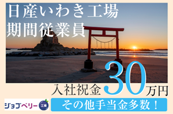 仕事内容 ◎メーカー支給金30万円!日産自動車より支給◎皆勤手当4万円!2か月ごとにず~っともらえる※特典各規定有【NISSAN車の製造】期間従業員大募集!◎家具家電付き個室寮◎大手メーカー直接雇用 <仕事内容>【期間工】【イチオシ案件】 ▼いわき工場…エンジン製造に関わる組立・加工主に低燃費、軽量・コンパクトの「最新鋭VQエンジン」の組立になります。 初心者歓迎ですので、初めての方でも安心してご応募して下さい。 ライン作業となります。 立ち作業・座り作業どちらもございます。 重量物を扱う(15㎏以上)可能性がございます。 個人作業・グループ作業どちらもございます。 ≪職場環境≫ 男女活躍中の職場です。 スポットクーラー、給水所あり ロッカー有り|休憩室完備 アピールポイント <仕事内容>【期間工】【イチオシ案件】 ▼いわき工場…エンジン製造に関わる組立・加工主に低燃費、軽量・コンパクトの「最新鋭VQエンジン」の組立になります。 初心者歓迎ですので、初めての方でも安心してご応募して下さい。 ライン作業となります。 立ち作業・座り作業どちらもございます。 重量物を扱う(15㎏以上)可能性がございます。 個人作業・グループ作業どちらもございます。 ≪職場環境≫ 男女活躍中の職場です。 スポットクーラー、給水所あり ロッカー有り|休憩室完備 \充実した福利厚生/ ◎社会保険・雇用保険完備 ◎制服貸与 ◎残業手当・深夜手当・休出手当 ◎車(マイカー)通勤可(無料駐車場あり) ◎正社員登用制度あり ◎食堂利用可(250円~400円) ◎寮費無料(水道光熱費含む) ※1人部屋、寝具・テレビ・冷蔵庫・エアコン完備 ♪他にもいろいろ♪ ◆メーカー支給金30万円 ◆皆勤手当4万円 (2ヵ月ごとに支給、2ヵ月の平均出勤率が90%以上) ◆満了慰労金 (初回1か月1万円、2回目5か月8万円、3回目3か月5万円) ※上記各特典・待遇規定有り 本求人は職業紹介事業者であるシーデーピージャパン株式会社による紹介案件です。