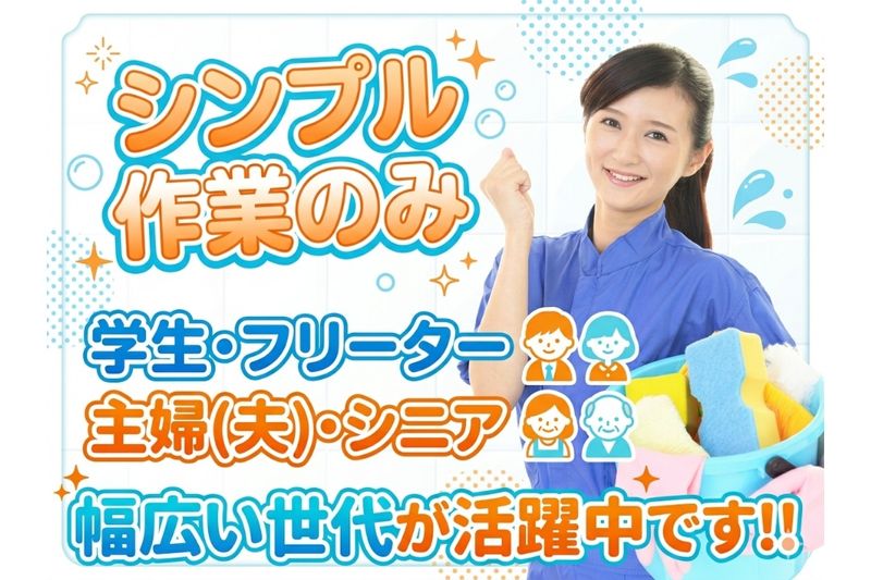 仕事内容: / シンプル作業のみ! 未経験OK \ ショッピングモール内の 清掃をお任せします! ■トイレ清掃 ■床面清掃 ■ゴミ回収 など お任せするのはシンプルな作業のみ。 難しい作業はないので 特別なスキルは必要ありません! 未経験の方も 久しぶりのお仕事復帰の方も 安心して働けます。 わからないことがあっても 先輩スタッフに気軽に聞けるので いつでも頼ってくださいね。 モクモク作業が得意な方や キレイ好きな方にはピッタリです!