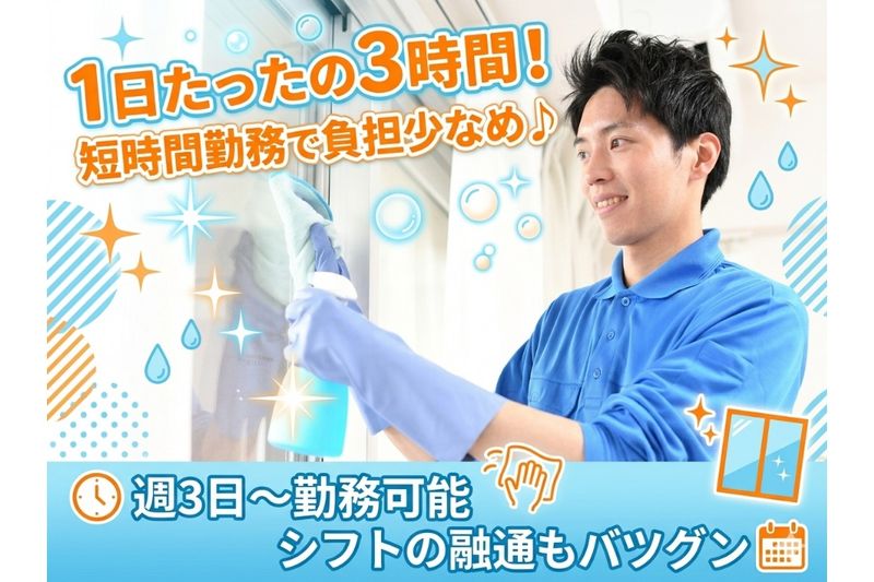勤務時間・曜日: / スキマ時間を有効活用! \ 平日 :8:00~11:00 土日祝:7:30~10:30 上記時間での勤務です! 週3日~勤務OK。 午前中のみ3時間で シフトの融通もバツグンなので プライベートの予定とも両立できるのが 嬉しいポイント。 ※毎週土日のどちらかは勤務必須 ※祝日も勤務できる方歓迎 ――――――――――――――― ■1日3時間のみ ■短時間勤務 ■週3日~OK ■シフト相談OK ■フリーター活躍中 ■主婦(夫)活躍中 ■シニア世代も応募OK ■お友達同士の応募OK