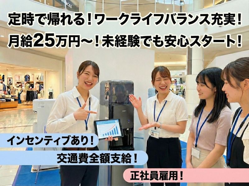 仕事内容 ✨週4日勤務でOK! ✨未経験からスタートした先輩も活躍! ✨異業種からの転職希望者も歓迎します ✨20~30代の若手スタッフ活躍中! ✨研修充実◎イチから学べる教育体制◎ ✨髪色ネイル等自由!オシャレに勤務♬ ✨インセンティブで成果が収入に直結 ・・・‥…━━━━━━━━━━━━★ ✅仕事内容  ̄ ̄V ̄ ̄ ̄ 関西圏のショッピングモールや イベント会場に設けられる特設ブースで、 来場されたお客様へ商品の案内や 提案を行っていただくお仕事です。 ・ららぽーと門真 ・ららぽーとエキスポシティ ・イオンモール大阪ドームシティ ・みのおキューズモール ・心斎橋オーパ などのイベント会場多数! 基本的に直行直帰◎ 明るく活気ある空間で 多くのお客様と接しながら 商品やサービスの魅力をお伝えします。 【具体的には】  ̄ ̄ ̄ ̄ ̄ ̄ ̄ ■イベント会場・ショッピングモール への出向(2~5名のチーム制) ■ブース設営・レイアウト調整 ■販促ツールの準備・配布 (ティッシュ・お菓子など) ■お客様へのご案内・提案対応 ■契約手続・書類作成などの成約業務 ■イベント終了後の片付け・振り返り チームで動くので初めての方でも 安心してスタートできます✊ ・・・‥…━━━━━━━━━━━━★ ✅手厚いサポート体制で安心!  ̄ ̄V ̄ ̄ ̄ ̄ ̄ ̄ ̄ ̄ ̄ ̄ ̄ ̄ 経験や資格は一切不要。 多くの先輩が未経験からスタートし、 今では第一線で活躍しています✨ 入社後は先輩が丁寧にフォローしながら、 業務の流れやお客様対応を 少しずつ身につけられる環境です。 できることを一つずつ増やしながら、 自分のペースで成長していきましょう。 ・・・‥…━━━━━━━━━━━━★ ✅入社後の流れ  ̄ ̄V ̄ ̄ ̄ ̄ ̄ 入社後は、まず4〜5日間の社内研修で 商品知識やトークスキルを学びます。 その後は先輩社員と同行し、 現場でのOJTを通じて実践力を養成✊ 「見て覚える」ではなく、 「一緒に学び、成長できる」 ―――そんな研修スタイルをお約束します。