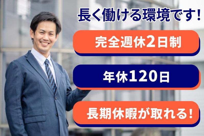 休日休暇 完全週休2日制(土日・祝) 年間休日120日(会社カレンダー) ・夏季休暇 ・年末年始休暇 ・GW休暇 ・有給休暇