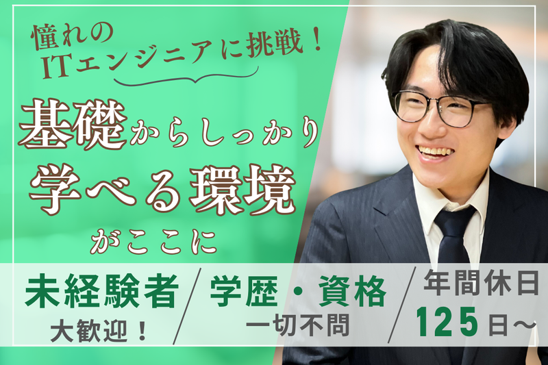 仕事内容 \未経験からITエンジニアへ!一歩ずつ着実に育てます/ ☆応募の「♡保存」もお忘れなく☆ +:-:+:-:+:-:+:-:+:-:+:-:+:-:+:-:+:-:+:-:+:-:+ <この仕事のポイント> ・文系出身、社会人経験ゼロでも大歓迎! ・3ヶ月以上の研修でITの基礎からしっかり習得◎ ・安心のチーム配属&先輩のサポートあり ・東京23区内勤務(本社:飯田橋+各プロジェクト先) ・派手な成功より、地道な努力を大切にする社風 +:-:+:-:+:-:+:-:+:-:+:-:+:-:+:-:+:-:+:-:+:-:+ IT業界に興味はあるけれど、「経験もスキルもない…」という方。 株式会社クリーブなら、基礎からじっくり学び、着実に成長していける環境があります。 ▼お任せするお仕事 システムエンジニアとして、各種ITシステムの設計・開発・テストなどに関わっていただきます。 ▼まずは研修からスタート(約3ヶ月) - Java・SQL・HTMLなど基礎的なプログラミング - ビジネスマナーや報連相など社会人スキル - 設計書の読み方やチームでの開発手法など \パソコン初心者でも問題なし/ ▼研修後はチームでのお仕事へ - 先輩エンジニアと一緒に設計・開発に参加 - お客様との打ち合わせや、資料作成サポートなど - 少しずつ実務に慣れて、着実にスキルアップ! ▼勤務地について - 本社:飯田橋(研修や社内打合せ時など) - 各プロジェクト先:東京23区内が中心(希望考慮) - 転居を伴う異動は一切ありません ▼こんな方にピッタリ - 誠実にコツコツ努力できる方 - 時間や約束をしっかり守れる方 - 指示を素直に受け入れて行動できる方 - 仲間と協力し合って働くのが好きな方 - 派手さよりも、地道な成長を大切にしたい方 ▼入社後のサポート体制 - 定期的な面談とキャリア相談あり - IT未経験者向けの技術研修は292時間以上 - 一人ひとりに合わせたローテーション配属で、得意を伸ばせる環境 未経験からITエンジニアへ。 「自分にできるかな?」と思った方こそ、ぜひ一歩踏み出してください。