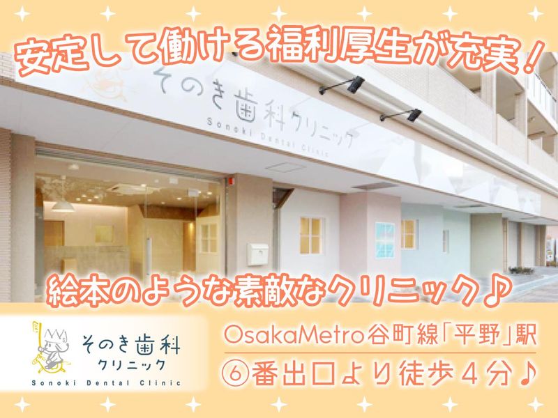 職場環境 OsakaMetro谷町線「平野」駅~徒歩4分! まるで絵本に出てきそうな素敵な外観、院内もさらに可愛らしい内装でお仕事中も居心地よく働ける環境です♪
