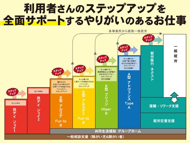 事業拡大の為、新規スタッフ大募集! 障がいのある方へ就職、就労定着、日中活動を サポートするお仕事♪