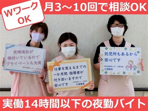 Wワーク可◆月3回~10回勤務★1夜勤2万円~2万2000円◎車通勤OK!実働14時間以内で短め☆【四日市市、山城駅、特養、介護職、夜勤バイト】