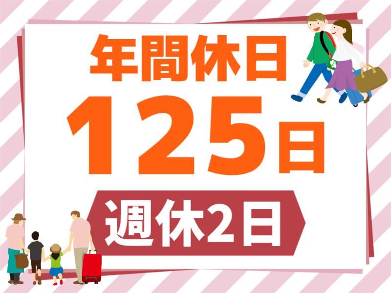 休日休暇 週休2日(日曜・祝日+他)⇒土日休みの相談可能! *平日休みで土日出勤できる方、大歓迎! ★年間休日125日
