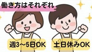 特徴 未経験者活躍 / 女性が活躍 / 転勤なし / 残業なし / フリーター活躍 / マイカー通勤OK / 職場見学可 / リモート面接OK / 週2・3日からOK / シフト自由 / 即日勤務OK / 急募 / 交通費支給 / 男性が活躍 / 20代活躍中 / 30代活躍中 / ミドル活躍中 / シニア活躍中 / 主婦・主夫活躍中 / 制服あり / 給与前払い制度あり / 早朝勤務 / 夕方開始 / 深夜勤務 / 長期 / 週払い・日払いあり / 外国人活躍中