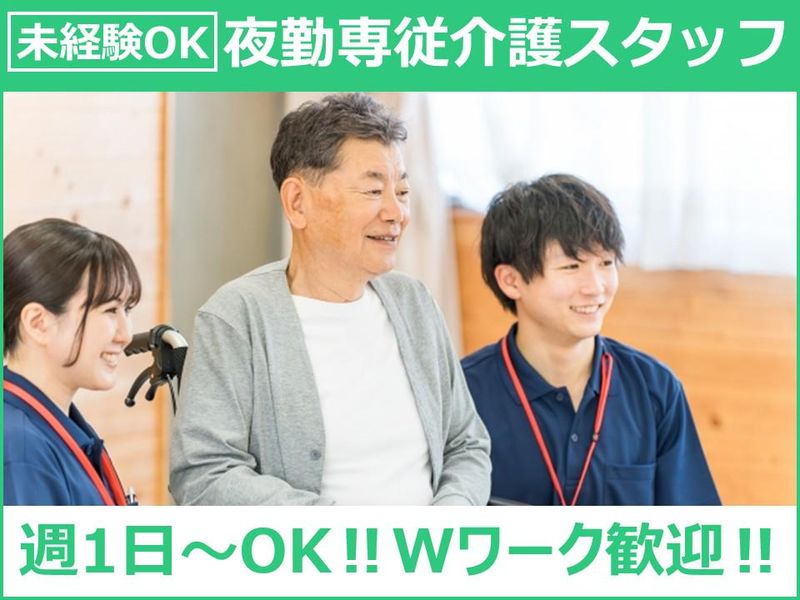 仕事内容 << 夜勤専従のWワーカー活躍中! >> 未経験歓迎!経験やスキルは必要ありません ※自立度の高い利用者が多数!負担少なめ! -------------------- 【仕事内容】 *食事の提供・朝の準備のお手伝い *就寝前のお手伝い・夜間見守り *デイサービスへの送り出し など << 未経験者・新人スタッフ活躍中 >> 基本的に2~3人体制で行う夜間勤務のため 困ったことがあればすぐに相談できる環境! スタッフ同士仲が良く、雰囲気も良好です! -------------------- 【スタッフインタビュー】 「お疲れ様!」「ありがとう!」などねぎらいの 言葉が飛び交う、笑顔が多い職場です。 職員同士の仲が良いから、利用者様も笑顔に なってくれるんじゃないか…と思いますね。 -------------------- 【 株式会社 ケアフィールドかがやき 】 「従業員の生活最優先」で考える代表がいます  ̄ ̄ ̄ ̄ ̄ ̄ ̄ ̄ ̄ ̄ ̄ ̄ ̄ ̄ ̄ ̄ ̄ ̄ ̄ ̄ 「人としての尊厳」を大切に、心を込めた介護 を提供しています。利用者様本人はもちろん そのご家族様とも密に関ることで信頼を得て おかげさまで沢山の方に利用いただいており ます。これからも地域社会と協力し、更なる サービスの提供・発展に尽力して参ります。