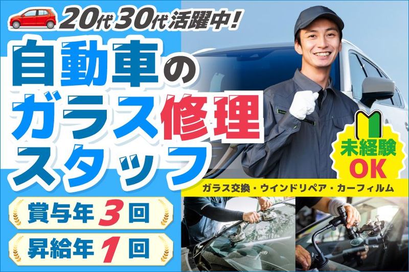 仕事内容 \ 未経験から安心スタート!/ 9割が未経験スタート! 手に職をつけられる 【車のガラス修理スタッフ】大募集✧ ━━━━━━━━━━━━━━━━━ 魅力ポイント ◇未経験から正社員デビューOK! 工具の持ち方から丁寧に教えます◎ ◇各種福利厚生充実◎ ◇頑張りはしっかり評価! 賞与年2回+決算・期末手当あり! ◇月残業時間平均3時間! ━━━━━━━━━━━━━━━━━ 【 仕事内容 】 自動車のガラス修理業務をお任せします♪ 入社後は、先輩がマンツーマンで指導します! まずは簡単な作業からスタートするので安心してください♪ 【具体的な仕事内容】 ▼自動車ガラスの交換・修理(ヒビ・傷など) ▼大手ディーラーや整備会社中心、安定した依頼あり ▼未経験OK!工具の使い方から丁寧に指導 ▼慣れたらお客様先での作業もあります! (ガラス交換・修理・カーフィルム施工・安全装置センサー調整など) \弊社の魅力/ 大手ディーラーに信頼される、自動車ガラスの専門工場です! 1961年、旭川市の小さな町工場からスタートした「富士ガラス」。 自動車ガラスの修理・交換に特化した専門店として、 長年にわたり技術を磨いてきました。 その確かな技術と豊富な実績が認められ、 今では大手ディーラーからも厚い信頼を得ています。 さらなる事業拡大を目指し、新たな仲間をお迎えします!