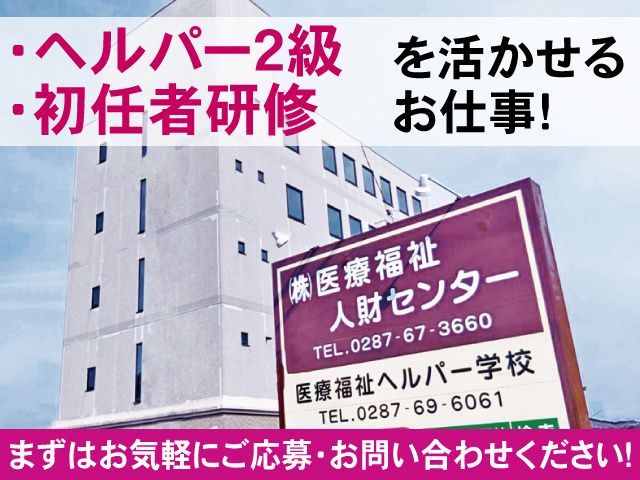 仕事内容 西那須野駅近くの住宅型有料老人ホームでのお仕事 介護経験・資格お持ちの方、 資格・経験を活かして無理なく働けます。 入居者25名の小規模施設だから、 一人ひとりにしっかり向き合える介護ができます。 ▼お仕事内容▼ 那須塩原市の住宅型有料老人ホームでの 介護業務です。 ・身体介助 ・食事介助 ・入浴介助 ・リネン交換 ・レクリエーション業務 ▼利用者数▼ 25名 ▼勤務先について▼ 西那須野駅から車で6分(2km圏内) 駅から近く通勤にも便利です \お仕事のオススメポイント/ 〇幅広い世代で年齢を問わずに 活躍できる職場です。 〇子育て中や中高年の方も活躍中! 〇駅チカで通勤便利! \こんな方にピッタリ/ 〇Wワーク、扶養内で働きたい方 〇短時間で無理なく働きたい方 〇家庭と両立させたい方 〇介護経験を活かしたい方 〇人と関わる事が好きな方 〇誰かの役に立つことが好きな方 〇ブランク明けで復帰したい方 <下記いずれかの経験があれば活かせます> ・介護施設、病院での介護・看護助手経験 ・介護職(正社員・パート・アルバイト) ・ブランクのある方も歓迎 ※経験が浅い方もOK <求職者さんに寄り添う事で定評!> 当社は、施設都合だけでなく あなたの希望条件も調整いたします。 経験豊富な営業が対応いたしますので、 「他社で合う仕事がなかった方」も大歓迎! 介護施設・医療機関など 多数の職場から希望に合うお仕事をご紹介可能。 まずはお気軽にご応募・お問い合わせください! ご質問だけでも結構です お問い合わせにつきましては、 TEL.0287-67-3660 採用担当までお願い致します 「求人募集の件で」とお伝えいただくとスムーズです。