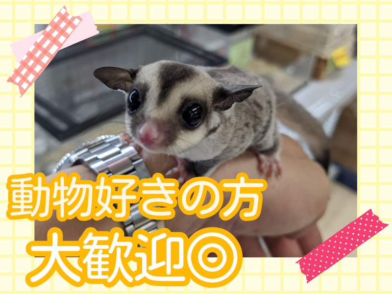 仕事内容 \ オープニングスタッフ★ / ●リニューアルオープンにつき大募集! ●未経験歓迎!動物好きの方◎ ●フルタイムで安定収入Get! ―・・―・・―・・―・・―・・―・・―・・―・・― お電話でのお問い合わせも大歓迎! TEL:052-838-7200 担当:鈴木(A&M企画) ―・・―・・―・・―・・―・・―・・―・・―・・― -‐-‐-‐ 【 仕事内容 】 -‐-‐-‐ 可愛らしい小動物 <ハムスターやウサギ・インコなどの鳥>や 観賞魚の販売とエサやり、 ケージや水槽の清掃がメインのお仕事です。 一から先輩スタッフが教えるので 未経験の方も大丈夫ですよ。 慣れれば簡単な仕事なので安心して下さい。 業界未経験から始めたスタッフも 活躍中です! -‐-‐-‐ 【 未経験歓迎! 】 -‐-‐-‐ ★ハムスターやウサギ 観賞魚が好きな方であれば大歓迎です! ★大切にお世話した小動物たちが 新しい家族のもとへ巣立っていくと やりがいを感じられます! ★生き物を大切に扱ってくれる方であれば 未経験の方も大歓迎! -‐-‐-‐ 【 働く特典も! 】 -‐-‐-‐ ★社割もあるので ペットを飼っている方は エサやおもちゃを安く買うことも可能!