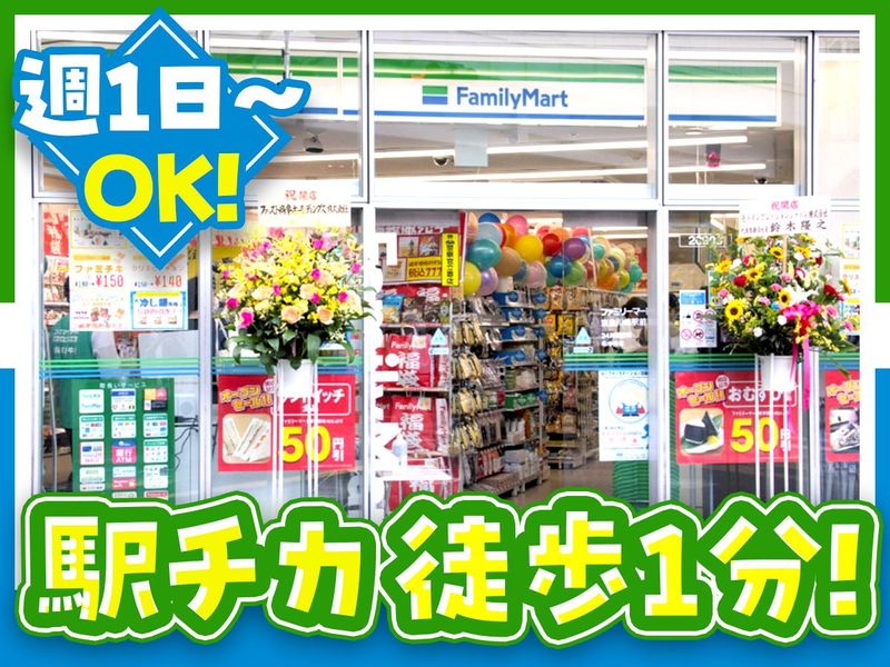 仕事内容 ◇━━━━━━━━━━━━━━━━━━◇ \夕勤シフトで働ける方、大募集中!/ 3月より時給を1,300円にUPしました! ◇━━━━━━━━━━━━━━━━━━◇ 未経験・アルバイトデビューでもOK! ファミリーマートのコンビニスタッフ募集♪ ―――――――――――――――――――― 【主な仕事内容】 ✅レジ ✅商品陳列 ✅清掃(イートイン・トイレ貸出ナシ!) ✅商品の発注 など… まずは元気に挨拶ができればOK! お仕事はできることからお任せします。 分からないことがあったら、 いつでも先輩スタッフに相談してOK! 丁寧に優しく教えるので未経験の方でも安心♪ ━━━━━━━━━━━━━━━━━━━━ ⭐当店のアピールポイントはコチラ!⭐ ✅自慢の超・柔軟シフト!  ̄ ̄ ̄ ̄ ̄ ̄ ̄ ̄ ̄ ̄ ̄ ̄ ̄ シフトは【1週間ごと】の提出! 週1日~勤務OKで、 どうしても入れない週は【週0】も相談OK! 学校や予定に合わせて、ムリなく働けます。 ✅独自の昇給基準!時給最大200円UP☆  ̄ ̄ ̄ ̄ ̄ ̄ ̄ ̄ ̄ ̄ ̄ ̄ ̄ ̄ ̄ ̄ ̄ ̄ ̄ スキルに応じて時給とランクがUP! リーダー・トレーナーなど、 役職で成長が見える仕組みです! 中には時給が200円UPしたスタッフも◎ ✅でも1番は…やっぱり楽しさ!  ̄ ̄ ̄ ̄ ̄ ̄ ̄ ̄ ̄ ̄ ̄ ̄ ̄ ̄ ̄ 働いているスタッフは学生さんがメイン! 毎日大勢でワイワイ営業しています! 頼れる&優しい仲間がいることが 当店イチバンの魅力なんです♪ ━━━━━━━━━━━━━━━━━━━━