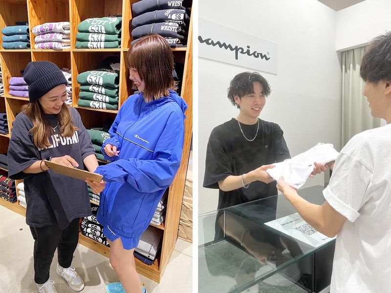 仕事内容 ◆・。――――◇急募◇――――。・◆ ~人気アパレルブランドで働こう~ 週2日~OK&個人ノルマはありません◎ 髪色・ネイル・ピアスなどオシャレ自由 接客職デビューも大歓迎です♪ ◆・。――――◇・・◇――――。・◆ 【お任せするのは…?】 接客販売業務全般をお任せします! ◇お客様への接客、商品提案 ◇レジ打ち ◇商品の陳列 ◇納品、商品の品出しなど 元気に挨拶ができればOK◎ お仕事の進め方は1つずつ 一緒に覚えていきましょう♪ もちろん販売経験者の方は即戦力に☆ <お仕事のポイント> ❯❯❯❯ 個人ノルマなし!  ̄ ̄ ̄ ̄ ̄ ̄ ̄ ̄ ̄ ̄ ̄ ̄ ̄ アパレルと聞くとノルマがあるイメージ がありますが、個人ノルマが課される ことはないのでノビノビ働けます!! ❯❯❯❯ 嬉しい社割あり★  ̄ ̄ ̄ ̄ ̄ ̄ ̄ ̄ ̄ ̄ ̄ ̄ ̄ お手頃価格で商品を購入できます! ブランドが好きな方・ オシャレが好きな方必見!! ❯❯❯❯ 個性を活かして働ける♪  ̄ ̄ ̄ ̄ ̄ ̄ ̄ ̄ ̄ ̄ ̄ ̄ ̄ 髪色髪型・ネイル・ピアス自由! 働きたいけどオシャレは諦めたくない… そんな方も大歓迎です◎ *規定あり ============= <チャンピオンについて> 60~70年代のアメリカンカレッジ スポーツを彷彿とさせる店内は、 スウェットやTシャツを中心に、 カレッジテイスト溢れるアイテム がラインナップ。 男性、女性問わず、 楽しめる商品を取り揃えています。