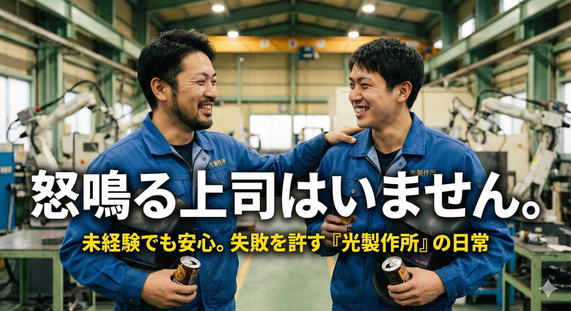 仕事内容 残業月10時間の工場で、 実際どんな感じで働いてる? 〜株式会社光製作所の「リアル」な 1週間を追った〜 「残業月10時間って本当?」 「製造業って実際きついんでしょ?」 そんな疑問を持つあなたに、 溶接課長の西川琢磨さん(39歳、 勤続16年)の1週間に密着しました。 綺麗事抜きの、 等身大の働き方をお見せします。 【月曜日 7:55】出社の瞬間 西川さん:「おはよう! 週末の釣果報告します笑」 工場の駐車場に西川さんの軽トラが到着。 助手席には週末の琵琶湖釣行で使った クーラーボックスが見える。 「昨日はブラックバス2匹! まあまあの釣果やったかな。 今日からまた1週間、良い溶接しますよ」 同僚の田中さん(32歳)に 自然に声をかける光景が、 光製作所の朝の風景だ。 プライベートと仕事のメリハリを 大切にする行動様式 「前の会社では、趣味の話なんてしたら 『仕事に集中しろ』って怒られました。 ここは違う。週末何してた?って 普通に聞き合える関係です」 【月曜日 12:15】昼休みの本音 西川さん:「昼休みに同僚と 今度のキャンプ計画を話してます。 仕事の話より趣味の話が多いかも笑」 休憩室で手作り弁当を広げる西川さん。 隣には入社3年目の山田さん(27歳)。 「GWのキャンプ、琵琶湖畔のとこにしない?」 「いいですね!でも虫が多そう...」 「大丈夫、対策教えるわ笑」 50分の昼休憩のうち、 仕事の話は最初の5分程度。 残りは趣味、家族、最近の出来事で 盛り上がる。 職場の人間関係が自然体である雰囲気 「新人の頃、先輩たちがこんな風に 話してるのを見て『この会社、 居心地いいな』って思ったんです」 (山田さん) 【火曜日 16:45】突然のトラブル発生 溶接ロボット2号機にエラーが発生。 製品の納期は明日の午前中。 「おっ、これはちょっと厄介やな... 山田、手伝ってくれる? 1人でやるより2人の方が早い」 17時過ぎに復旧完了。 この日の残業は30分で済んだ。 「チームワークがあるから、 1人で抱え込まなくて良い。 前の会社では『新人は黙って見てろ』 でしたけど、ここはみんなで 解決する文化がある」 【水曜日 17:00】定時退社の理由 チャイмが鳴ると同時に、 西川さんは作業を終了。 「今日は姪っ子の誕生日なんで、 プレゼント買いに行かなあかん。 明日の準備は明日の朝一でやります」 家族との時間を大切にする価値観 「課長だから残らないといけない、 なんてルールはない。 メリハリつけて働く方が、 結果的に良い仕事できます」 【木曜日 8:30】後輩指導の現場 新人の佐藤さん(24歳、入社2ヶ月)の 溶接をチェック。 「うーん、ちょっと角度がな...。 ほら、こうやって」 西川さんが実際に溶接して見せる。 火花が美しく弧を描く。 「すげぇ...16年の差ですね」(佐藤さん) 「いやいや、僕も最初は下手くそやった。 プラモデル作るのと一緒で、慣れが大事。 焦らんでええ」 失敗を責めず、成長を見守る指導方針 【金曜日 15:30】週末への切り替え 西川さん:「今日は定時で帰れそうやな。 明日は琵琶湖でバス釣り行こう」 金曜午後、工場内に漂う 「週末モード」の空気。 「今週のノルマはクリアできた。 明日の天気予報もバッチリ。 久しぶりにランカーサイズ狙ってみよか」 17時のチャイムと同時に 「お疲れさまでした!」の声が響く。 余裕を持って趣味の時間を 確保できる価値観 【製造業のリアル】夏は暑い、でも続ける理由 「正直言って、夏の工場は暑い。 エアコンはあるけど、 溶接の火花で体感温度は上がる。 でもね、それでも続けてる理由があるんです」 暑さへの対処法: 10時と15時の休憩では必ず水分補給 夏場は冷たいおしぼりを用意 「今日も暑いな〜」って同僚と 愚痴り合うのが意外と大事 「環境面では確かに楽じゃない。 でも、それを上回る『やりがい』と 『人間関係』がある。そして何より、 17時に帰れる日が多いから、 プライベートを犠牲にしなくて済む」 【残業の実態】月10時間は本当だった 西川さんの先月の残業時間: 第1週:2時間(設備トラブル対応) 第2週:0時間 第3週:5時間(月末の納期調整) 第4週:1時間(新人指導の延長) 合計:8時間 「忙しい時期(3月、年末)でも 月40時間が限界。 普段は本当に残業少ない。 『残業ありき』の働き方じゃないのが、 この会社の良いところ」 残業を断れる雰囲気: 「『今日は予定があるので帰らせてください』 って言っても、全然問題ない。 むしろ『お疲れさん』って言ってもらえる」 【課長になっても変わらないこと、変わったこと】 変わらないこと: 昼休みの手作り弁当(奥さん作) 琵琶湖での釣りが最高のリフレッシュ法 同僚との何気ない会話を大切にする姿勢 変わったこと: 新人さんの成長を見るのが 一番の楽しみになった 「どうしたら伝わりやすいかな」を 常に考えるようになった 責任は増えたけど、やりがいも倍増した でも勤務時間は変わらず、 プライベートも確保 「管理職になったから残業が増える、 なんてことはない。効率よく仕事して、 みんなで定時に帰る。それがうちの文化です」 