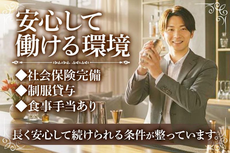 求めている人材 【歓迎条件】 ・バーテンダーとしての経験をお持ちの方(5年以上) ・お酒の知識が豊富な方 【求める人物像】 ・接遇マナーのある方 ・協調性があり、積極的に業務に取り組める方 ・臨機応変に動ける方