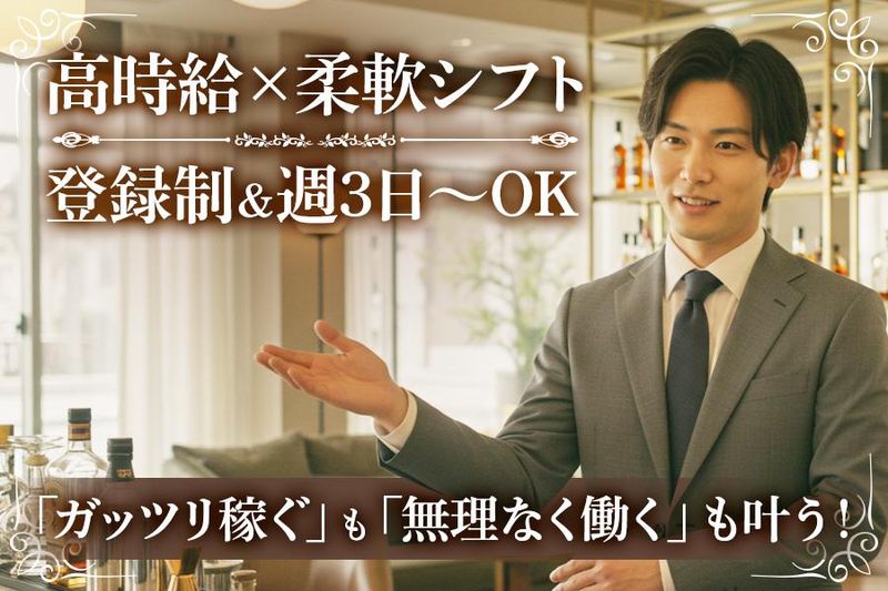 経験必須/カクテル作成/高時給2,500円~/週3日~