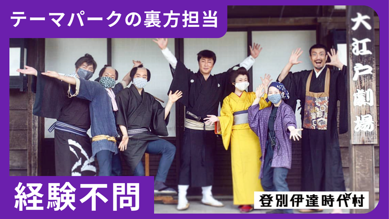アピールポイント: * 未経験でも安心のスタート 現在活躍中のスタッフも、ベテランが多く教え上手な人ばかり。事務の基礎から村ならではの仕事のコツまで、一つひとつ丁寧にお教えします。 * ワークライフバランスの充実 2025年度より「4週8休」を導入。残業もほとんどないため、登別の地でゆとりを持って長く働き続けることができます。 * 村を支えるやりがい あなたの用意した備品や整えた環境が、役者さんやスタッフの支えになります。裏方から「村の日常」を作る、大切なお仕事です。