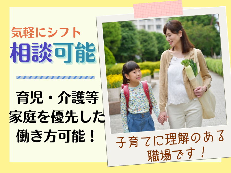 求めている人材 ■未経験者大歓迎! ■主婦(夫)さん、 副業・Wワーク(週40時間以上働いている方のWワーク不可)、 学生さん・フリーターさんも歓迎です! ■扶養内勤務もOK!ご相談ください。 / 隙間時間を活かして働きたい! \ そんな思いを持った方歓迎♪ ■久しぶりの社会復帰でブランクがある方、 家庭と両立して働ける職場を探していた方にもピッタリです。