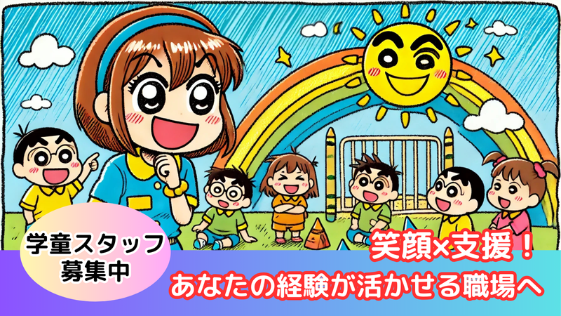 求めている人材 ★特別な資格・経験はいりません!★ \こんな方々、大歓迎/ ・子どもが好きな方 ・子どもと関わる仕事がしたい方 ・子育てが落ち着いて久しぶりに働きたいという方 ・子育ての経験を活かしてお仕事がしたい方 ・育児などに代わるやりがいをお探しの方! *シニア応援! *20代~60代の幅広い世代活躍中! *子育ての落ち着いた主婦さん活躍中 <こんな経験・資格が活かせます> スーパーのレジ打ち、飲食店のホール、キッチン業務、アパレル販売などのサービス業や育児、家事の経験を活かせます! もちろん、教員免許・保育士免許・保育士・保育補助・児童指導員・児童デイサービス・学童保育・社会福祉士・放課後等デイサービス勤務・幼稚園教諭・託児所・院内保育士・学童保育指導員 などの経験がある方も歓迎!