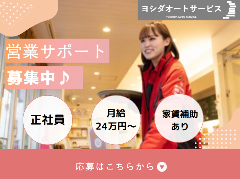 仕事内容 ✨✨この求人のアピールポイント✨✨ 1|未経験歓迎♪完全分業で安心◎ 2|マニュアル通りに進めれば基本OK! 3|家賃補助など手厚い福利厚生が魅力 4|扶養手当有&産休育休取得も推進♪ 5|未経験から管理職も目指せる環境! ✅仕事内容  ̄ ̄ ̄ ̄ ̄ ̄ ̄ ̄ ̄ ̄ ̄ ̄ ̄ ̄ ̄ ̄ ̄ 営業事務のお仕事です。お客様が スムーズに納車を迎えられるよう、 必要書類の確認・作成をはじめと したサポート業務をお任せします。 95%が未経験からスタートなので 事務作業が初めてでも大丈夫です♪ ⏩具体的な仕事内容 ■電話応対(お客様や他部署との調整含む) ■納車に必要な書類作成・データ入力 ■車を引き取りに来られるお客様の対応 ■スケジュール管理やお客様との納車日調整 ■車両オプションの説明や設定サポート ■納車時のお客様の質問対応・説明 ✅働きやすさの理由を紹介♪  ̄ ̄ ̄ ̄ ̄ ̄ ̄ ̄ ̄ ̄ ̄ ̄ ̄ ̄ ̄ ̄ ̄ ⭐分業制で安心して業務に集中 └来店から納車までを各担当者が 分業しており、周囲と連携・協力 して納車を目指します! 営業から「○日までに書類を作成して」 など依頼がくるので、ひとつずつ着実 に進めていきましょう! ⭐業務マニュアル完備 └未経験入社の先輩が活躍できた ノウハウがマニュアルにまとめ られています◎ 基本その通りに進めていけばOKなので 車の知識がない方や未経験でも大丈夫♪ ⭐カフェのような店内環境 └店内はログハウス風でカフェのような 雰囲気。ケーキやコーヒーの無料提供 もあり、お客様に「また来たい♪」と 思っていただけるようなリラックス した空間です。 ⭐長く続けやすい環境 └産休・育休の取得~復帰実績多数あり◎ ライフイベントを迎えても安心して 働き続けられます。復帰後も状況に 応じた業務内容の変更など、柔軟な 働き方にも対応しています。 ⭐手厚い福利厚生や充実の研修制度 └家賃補助や扶養手当といった福利厚生や 公的資格取得支援や立場に合わせた研修 など、社員が「ここでずっと頑張りたい」 と思えるような職場環境を整えています◎ ✅1日の流れ(例)  ̄ ̄ ̄ ̄ ̄ ̄ ̄ ̄ ̄ ̄ ̄ ̄ ̄ ̄ ̄ ̄ ̄ ⏰10:00〜11:00 出社し、メールやスケジュール確認 ⏰11:00〜13:00 書類作成や納車準備、お客様対応 ⏰13:00〜15:00 納車式の準備 ⏰15:00〜16:00 書類整理・データ入力 ⏰16:00〜17:00 他の部署と連絡・調整業務 ⏰17:00〜19:00 書類作成・電話応対、退社 ✅未経験から管理職~役員も◎  ̄ ̄ ̄ ̄ ̄ ̄ ̄ ̄ ̄ ̄ ̄ ̄ ̄ ̄ ̄ ̄ ̄ 経験ゼロから管理職、さらに役員に なった社員もいます! 頑張った分、どんどんキャリアアップ できる環境です。実際に未経験から 20代で管理職デビューする人も多数! 年齢に関係なく、あなたの頑張りを ちゃんと見て、評価します。 成長に合わせた研修制度やキャリア プランがあるので安心して自分の 可能性を広げてください! ✅当社について  ̄ ̄ ̄ ̄ ̄ ̄ ̄ ̄ ̄ ̄ ̄ ̄ ̄ ̄ ̄ ̄ ̄ 「お客様、働く全ての社員が幸せに なる会社」をミッションに掲げ、 地域社会の「車のかかりつけ医」として 南大阪エリアにおける軽自動車販売台数 No.1の実績を誇り、お客様からの高い 評価と信頼を得ています。
