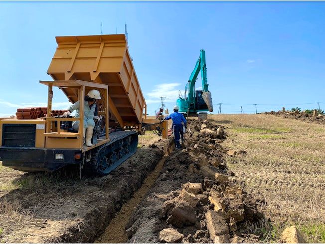 アピールメッセージ 土中に土管を埋める。 いたってシンプルです。 短期、期間限定OK! 来られる時だけでもOK! 日給10,000円〜 通いが心配な方は送迎可能です。 農地に土管等を埋め、水はけを良くする工事を手掛けています。 水はけの良くなった土の中には新鮮な空気が送り込まれ、微生物の運動が活発化し、土質が柔らかく養分が豊かになります。 <>作業の流れ> トレンチャーという専用の重機で土を掘ります。 ↓ その土中に土管を設置して埋めていきます。 シンプルな作業です。 日数や働き方など柔軟に対応しますので、何なりと言って下さいね! ご連絡をお待ちしています!