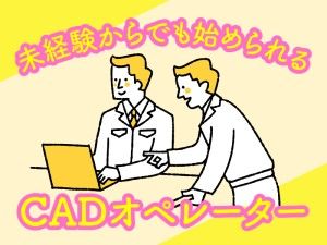 募集背景 関東エリアのお仕事 仕事内容 *(公共性の高い)都市圏インフラに関するCADオペレータ補助業務* ・社員の方がCAD作成を行うため、その補助全般をお願いします。 ・社員の指示を受けてのCAD作成を中心に、資料の作成をお願いします。 ・社内でのコミュニケーションはありますが、外部とのやりとりはほぼ無し! ・オフィスカジュアルOKの働きやすい職場です。 (ジーンズ不可、ポロシャツ等のラフな格好はOK) *CAD未経験OK!! まずは事務作業を覚えていただき、徐々にCAD操作も覚えていただきます! これからCADを覚えていきたい方にはぴったりのお仕事♪ ・週1日程度(月5日)までのテレワーク(在宅勤務)の制度あり!!