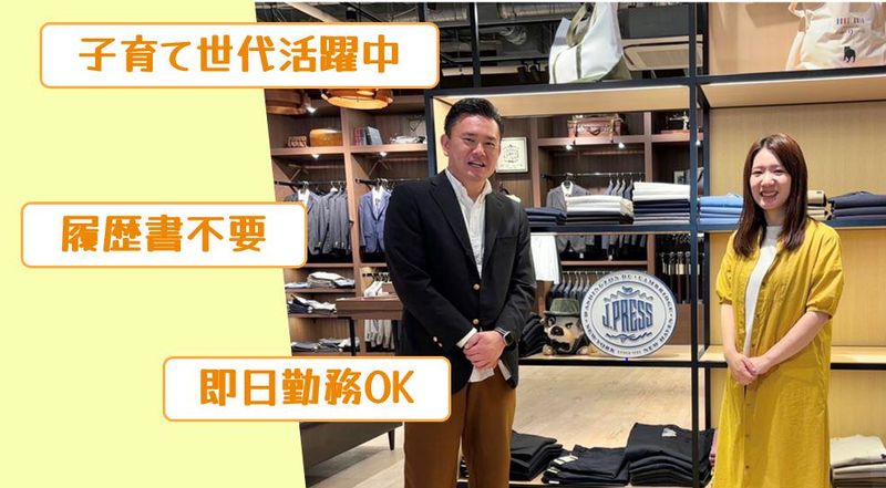 仕事内容 ==================== 即日勤務OKです!今すぐに働きたい方、必見!! 履歴書不要で応募ラクラク応募✨ シフトは自由で働きやすさ抜群! ==================== 『J.PRESS』りんくうプレミアム・アウトレット店、 アパレルブランドにて販売スタッフとしてご活躍頂きます。 【お任せする業務】 ・接客/会計 ・ディスプレイ ・陳列/品出し ・在庫管理 ・店内の清掃 など ▶ブランド知識不問! ▶アパレルデビュー歓迎です! 出来ることからスタート! 先輩スタッフがイチから丁寧に教えます! 少しでも興味があれば、ざっくばらんにお話しましょう! ★週20時間以上の勤務を推奨★ 【月収10.4万円以上=時給1300円以上×月80時間(週20時間×4週)】 【この求人のPOINT】 ・社会保険完備 ・交通費支給 ・社員割引有 ・長期勤務歓迎 【スタッフについて】 アルバイトは40~50代の男性・女性スタッフが中心に活躍中✨ 洋服やブランドに魅力を感じて入社したスタッフが多数♪ 先輩スタッフが一から指導させていただくので、未経験の方でもファッションを通して販売の楽しさなどお伝えできます! 【1日の流れ(お仕事の例)】 ➤開店前ー清掃、納品検品、商品整理、備品補充 ➤開店後ー販売体制、商品整理、清掃、売上分析、販売勉強会 ➤閉店時ーレジ締め、売上報告、 【弊社について】 『J.PRESS』 *メンズ・ウィメンズなど数多くの商品を取り扱うブランドです。 *クラシカルなヴィンテージアイテムに着心地やトレンドを追及してつくられたコンセプトが特徴のブランドとなります。