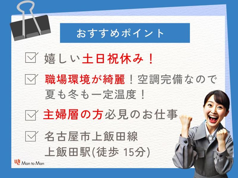 アピールポイント: 20代、30代のお仕事ならMan to Man!土日祝日休み 日勤勤務 充実した福利厚生あり 女性活躍中