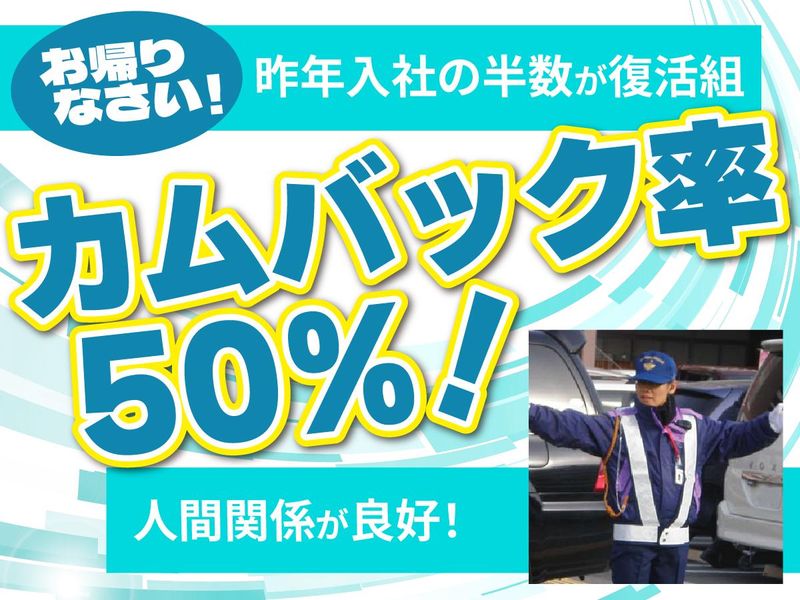 仕事内容 大型ショッピングセンター駐車場での交通誘導をお願いします。 具体的には、 駐車場での車両や歩行者の安全な通行を確保するために、 手、または誘導灯を使った合図により交通流をコントロールします。 また、案内業務も行うことがあります。 交通誘導警備の仕事は、 人々の安全を守るために重要な役割を果たすため、 適切な決定力と冷静な判断が求められます。 また、様々な状況に対応するために、 コミュニケーション能力や協調性も必要です。 未経験者でも研修があり、経験を積むことでスキルを磨くことができます。 「使わないのが幸せな技術って?」 万が一の場合に備え、AEDの講習をはじめ、他人を助ける技術・知識を習得できます。 使わないかもしれない技術を学ぶことにも、やり甲斐はあります。 世の中にとっても、人々にとっても、私たちの仕事が無駄になることが幸せなのかもしれません。 自分には使うことができませんが、それが私たちには最高のやりがいなのです。 <前職製造派遣スタッフのAさん> 私は派遣会社の現場職から警備のことは何も知らない状態で転職しましたが、 周りの先輩が親切に指導してくれたお陰で今では立派に('▽')現場を務めています(笑) <前職トラックドライバーのBさん> 50歳で転職しました。 前職はトラックの運転手をしていましたが、目の調子が悪く夜間走行に不安がありました。 交通誘導をされている方をよく見ていましたので一度経験してみようと思い入社。 そこから警備の奥深さを知り、今では現場の責任者を任されています。 <前職飲食店従業員のCさん> 以前はレストランで働いていました。 コロナ禍により休業状態となったため、短期で警備を始めました。 週末にはいろいろなイベントがあり、 実際に現場を訪れるこの仕事ならではの体験や発見もあります。 楽しみながら仕事をして気付けばもう入社4年目になってしまいました。 <前職コンビニ従業員のDさん> 元々街中で良く見かけていたパープルの制服は親近感が湧きました。 不安も少しある中で仕事をスタートしましたが、 親切過ぎるくらいの先輩達を始め、現場の隊員さんが優しく接してくれました。 毎日楽しく取り組めた事が長く続けられている理由だと思います。