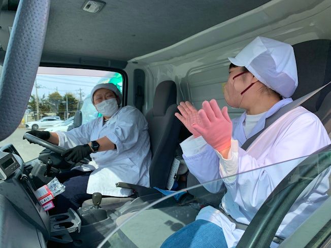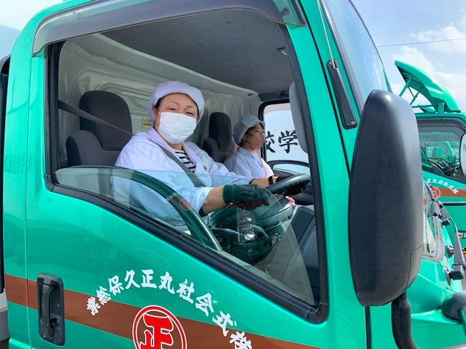 車の運転無し、助手席に乗って移動♪ 給食を届けるお仕事♪