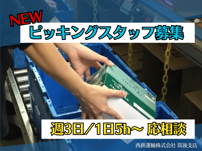 仕事内容 ======== おすすめポイント ======== * 物流業界大手の西鉄グループ! * 充実の待遇・福利厚生あり! * フルタイムで安定勤務! * 週3日、1日5時間~の勤務で応相談! ================ 倉庫内ピッキング作業スタッフ募集 ================ 20~50代男女スタッフ活躍中のピッキング作業。 出荷ラインにデジタル表示された商品と数を合わせて 専用ケースに入れる仕分け作業です。 重たい商品はほとんどありませんし、 コンビに向けの商品なので どれも馴染みのあるものばかり! どの商品かすぐ分かるので 未経験からでも作業しやすいんです。 先輩スタッフも一緒について作業を行うので 一緒に出来る事から一つずつ覚えていきましょう。 =========== \ ここが魅力 / #安定企業!  ̄ ̄ ̄ ̄ ̄ ̄ ̄ ̄ ̄ ̄ ̄ ̄ ̄ ̄ ̄ ̄ 「にしてつグループ」の一員として1948年の創業以来、 バス・電車をはじめとする運輸事業や 物流・スーパー・商業ビル・ホテルなどの 事業を展開している弊社。 コンビニ配送以外にも大型トラックでの商品輸送や 中型トラックで食品やお菓子の配送、 精密部品の海外輸送など、 お客様のニーズに合わせたサービスに取り組んでいます。 #充実の福利厚生!  ̄ ̄ ̄ ̄ ̄ ̄ ̄ ̄ ̄ ̄ ̄ ̄ ̄ ̄ ̄ ̄ 福利厚生も研修制度も業界トップクラスを目指して 環境整備を進めています。 ============ 正社員やアルバイトなどで倉庫業務に 携わったことがある方歓迎です! まずはお気軽にお問い合わせください!